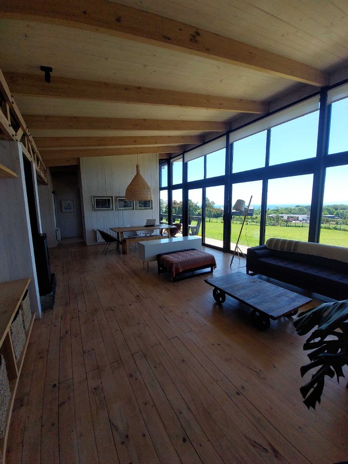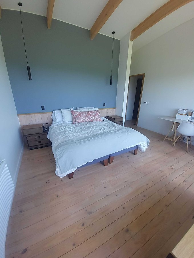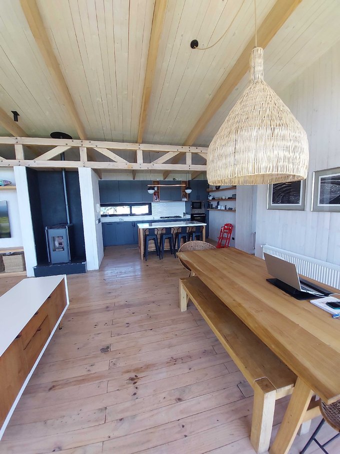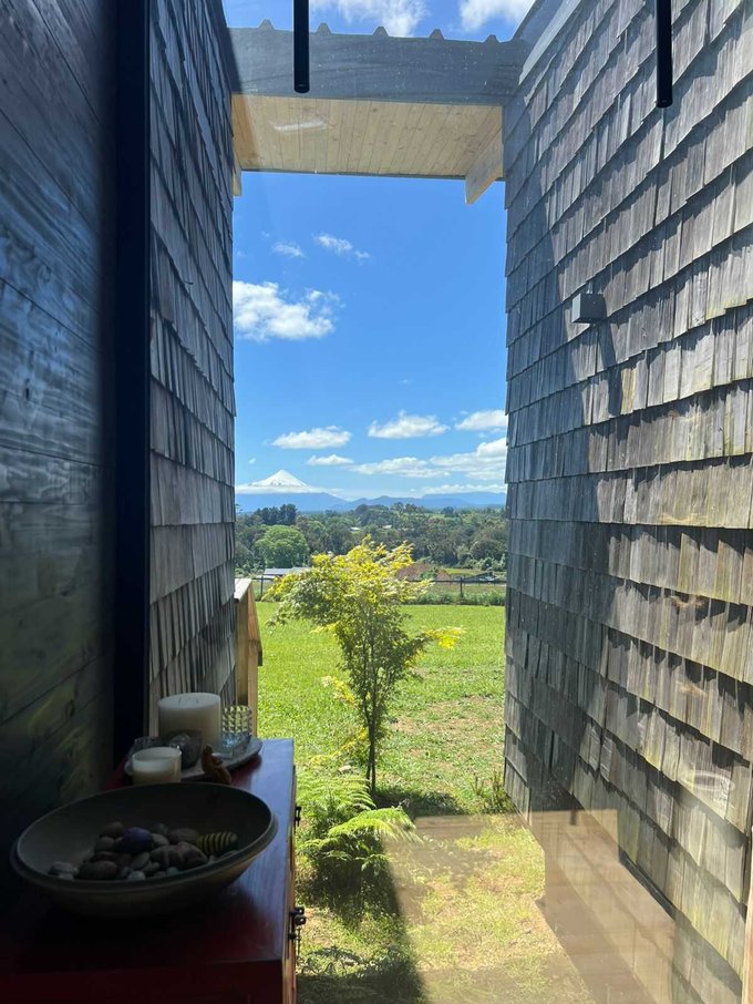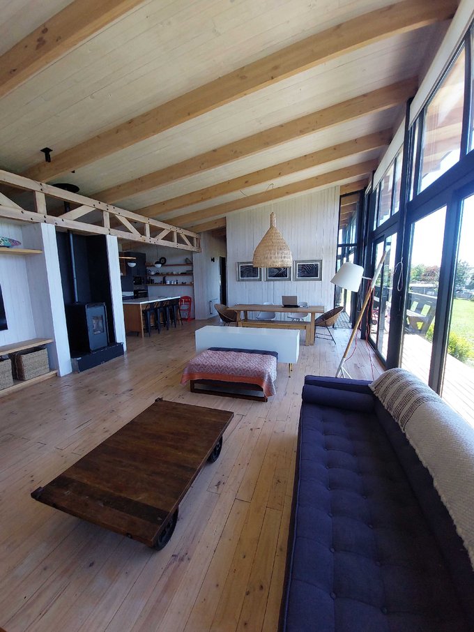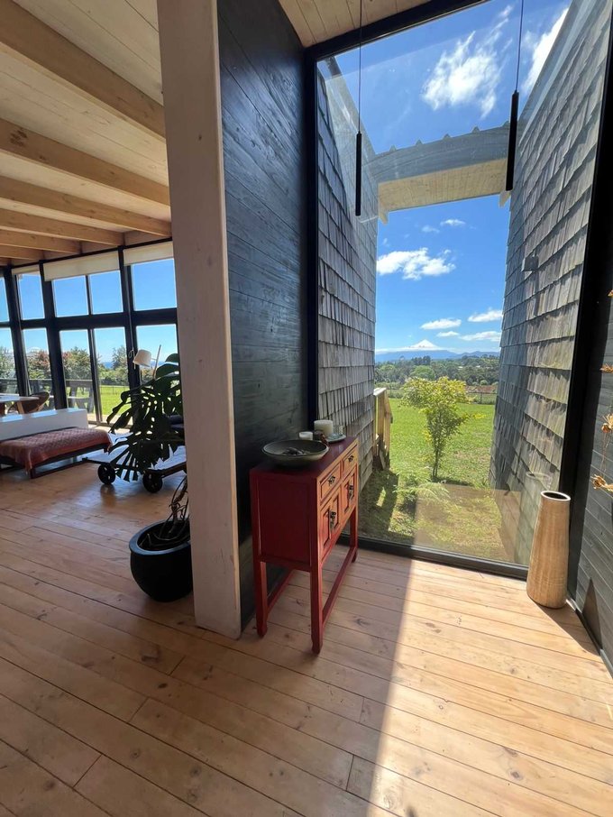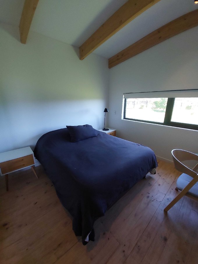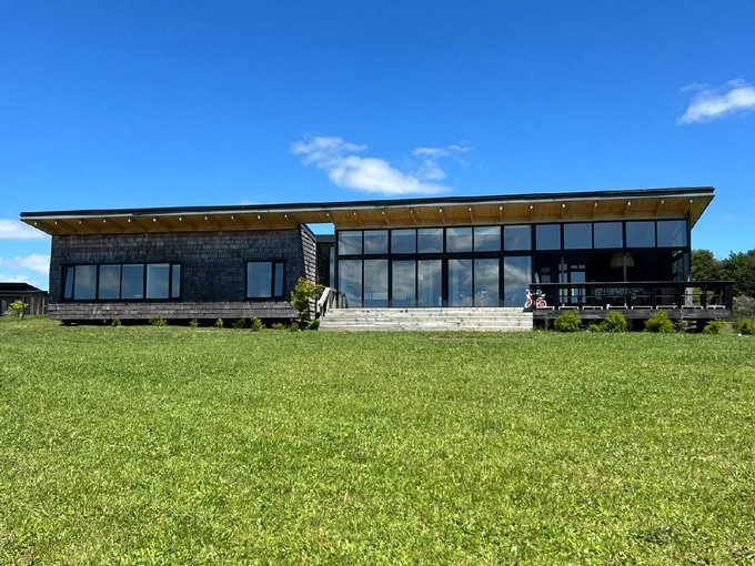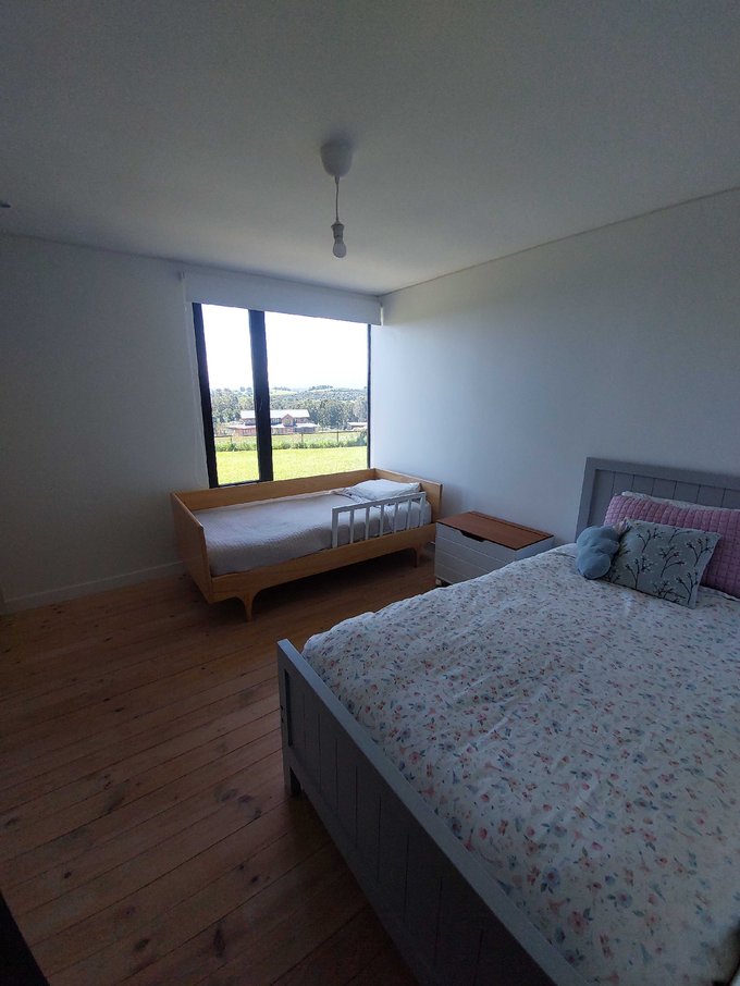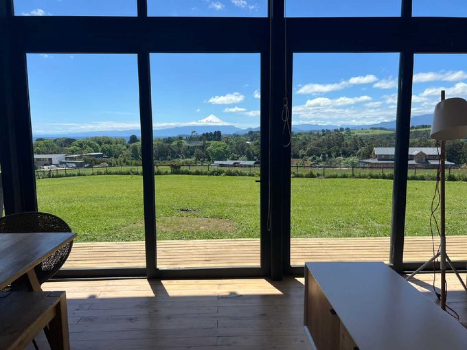 Esta casa de un piso cuenta con un hermoso hall de acceso con gran ventanal con vista al volcan osorno, baño de visitas, amplio living comedor con chimenea empotrada, grandes ventanales con una vista privilegiada y conectada a una gran isla que fluye hacia una práctica y luminosa cocina, cuenta además con lavandería, dormitorio y baño de servicio, además de un patio interior tipo loggia.