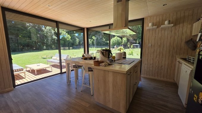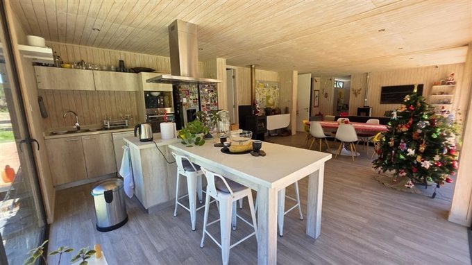 Buenas terminaciones, termopanel y persianas en todas las ventanas, cocina completamente equipada con mobiliario y artefactos. Aislación térmica en pisos, muros y cielo. Calefacción con estufa a pellet con ductos de aire caliente para los distintos recintos, además se dispuso de una combustión lenta para el romanticismo de la leña.