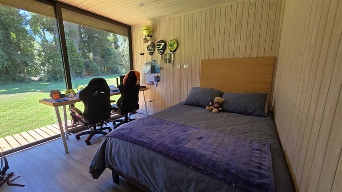 La casa se emplaza a pocos metros de la laguna privada de 1.2 hectáreas con playa para nadar y/o navegar con zona de juegos infantiles y quinchos, todo esto al interior del condominio Idanmapu, único por sus equipamientos, como el Club House, invernadero común, cancha de fútbol, más de 3 kms de senderos, lagunas, arroyos, pulmones verdes de bosques.entre otros atractivos para disfrutar y vivir en familia. Todo esto rodeado de ríos naturales y bosques nativos que invitan a sumergirse en la naturaleza. Cuenta con una urbanización de primera calidad, con agua de pozo propio, canalizaciones eléctricas, alumbrado en todas las áreas comunes. Cuenta con acceso controlado, sistema de telecomunicaciones exclusivo y sistema de tele vigilancia, entre otras tecnologías.