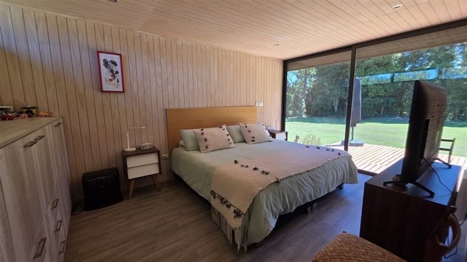 En una mágica parcela entre árboles centenarios, arroyos y praderas, se emplaza esta exclusiva casa que cuenta con 202 m2 en bello jardín de 10.500 m2 aprox. y que tiene la siguiente distribución: Chiflonera de acceso, amplio living y comedor con salida a la terraza y vista plena al bosque interior que hace de telón de fondo, funcional cocina cómo concepto de espacios abiertos, gran logia y despensa, además dispone de un recinto para gimnasio o sala de juegos. En la zona privada 2 cómodos dormitorios cada uno con su baño completo,y el gran dormitorio principal en suite con walking closet, y home office. Todos los dormitorios salen a la galería tipo terraza.