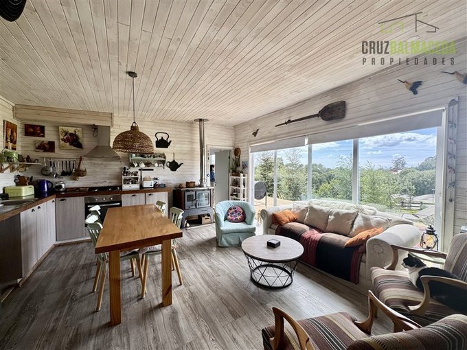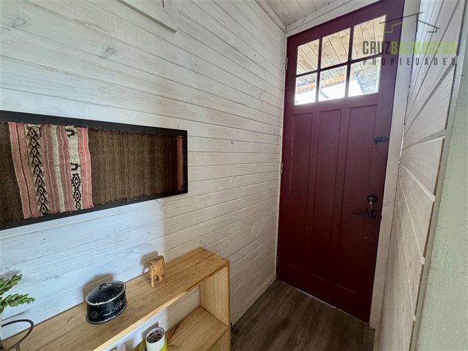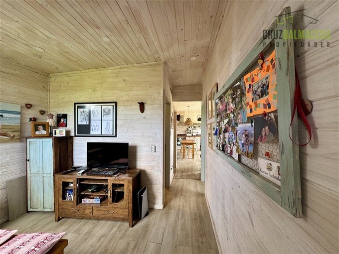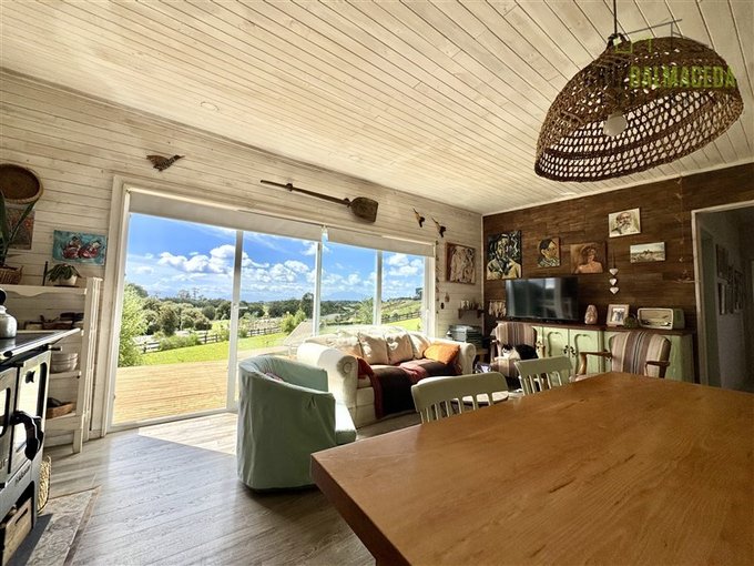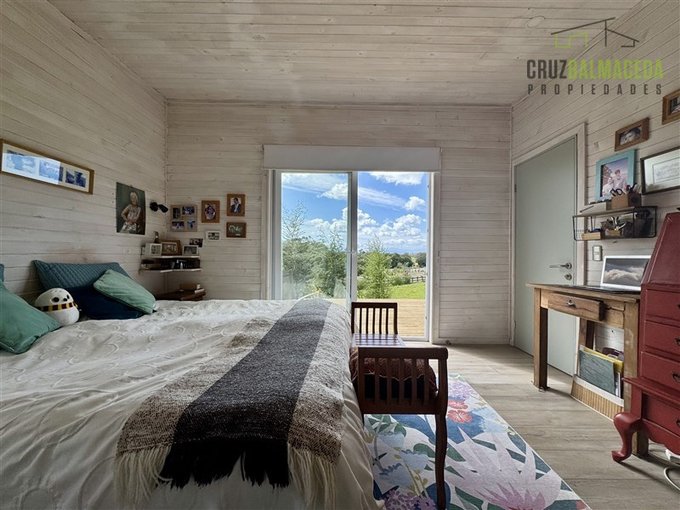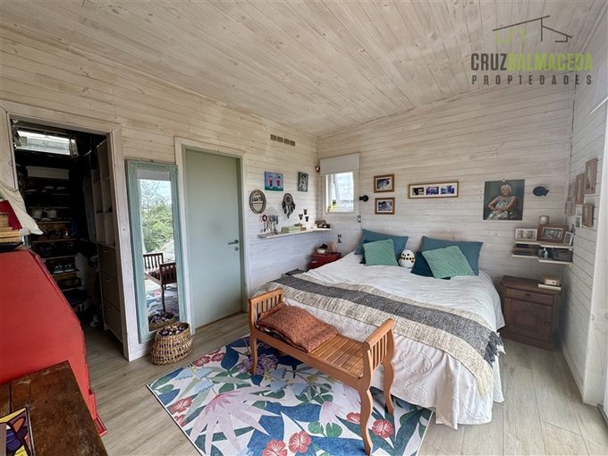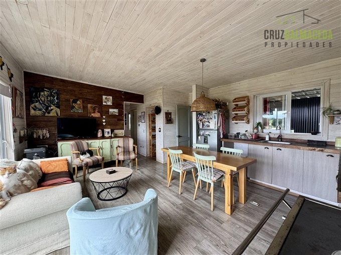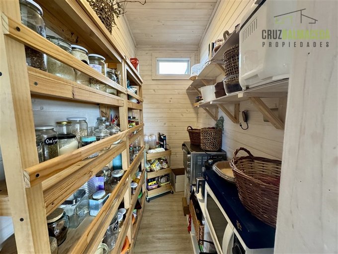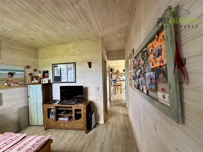 La parte principal de la casa es de 100m2 tiene un hall de entrada cerrado, en la parte central de la casa está la cocina integrada al living comedor, con una cocina a leña además de la de gas, en un lado de la casa separada por una puerta hay 2 dormitorios más un baño y una sala de estar. En la otra ala de la casa está el dormitorio principal en suite con walk - in closet.