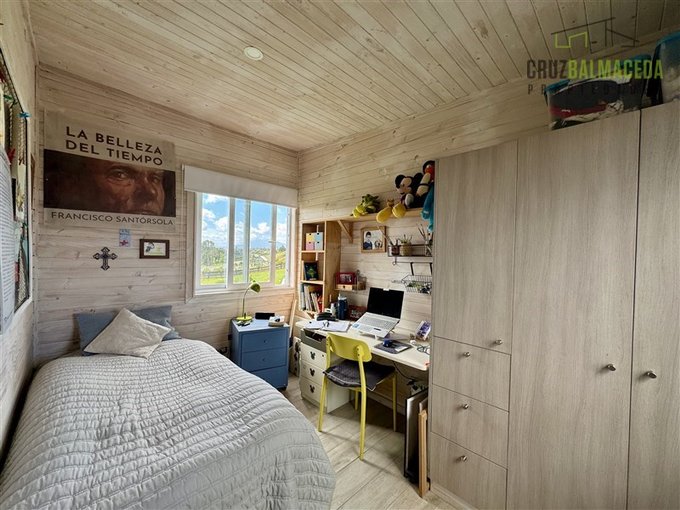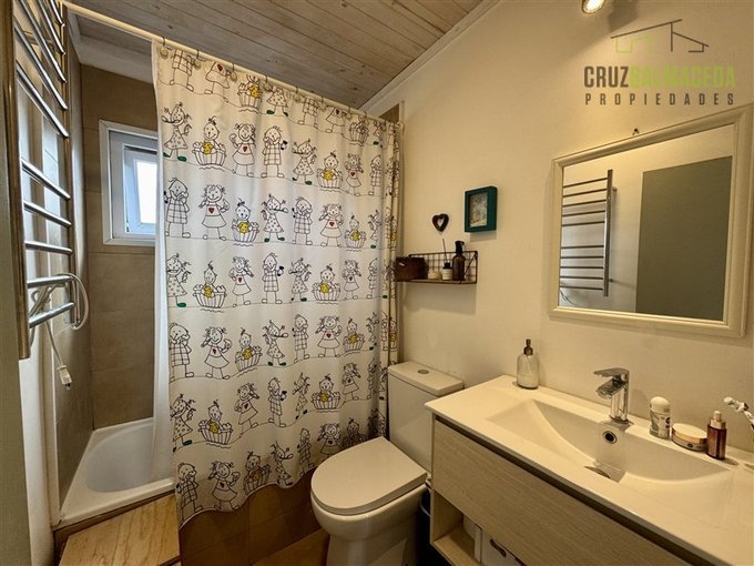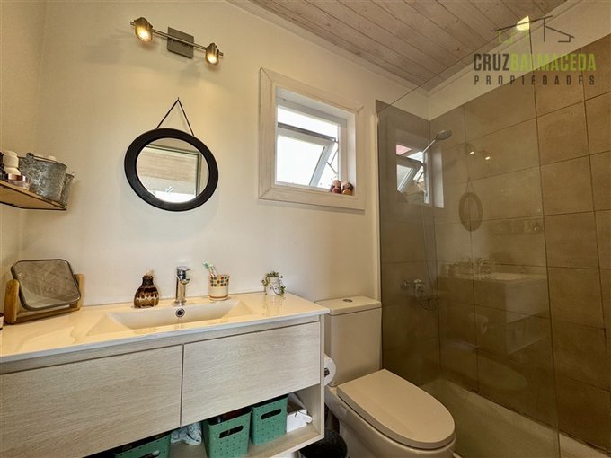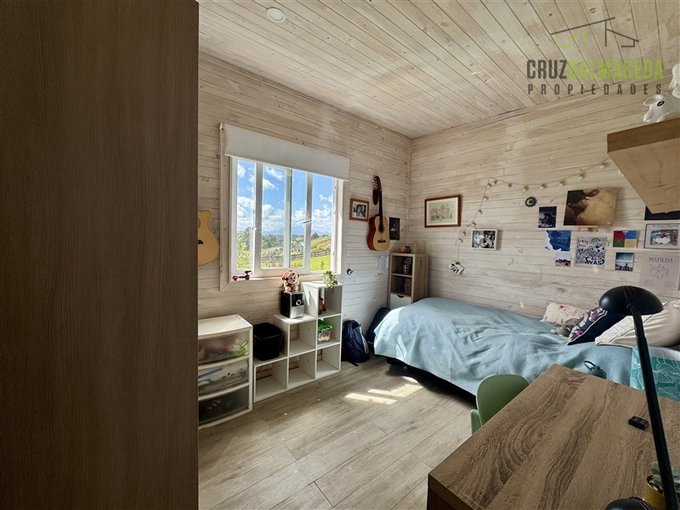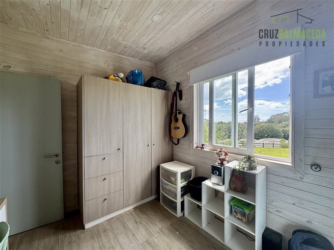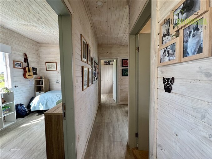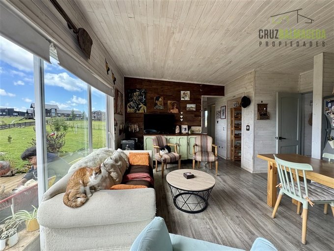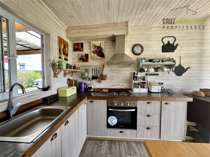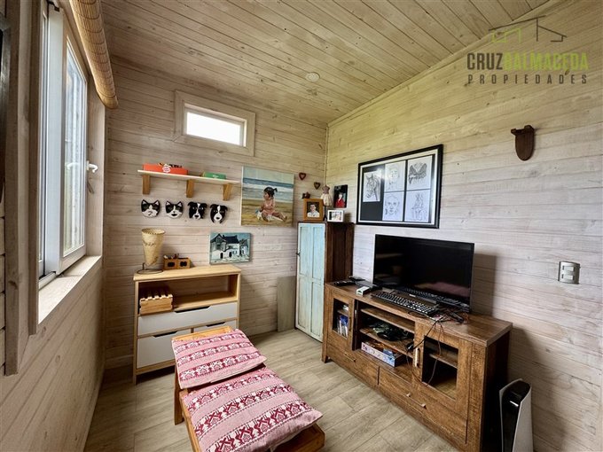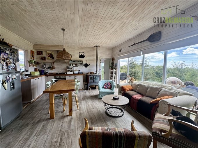 La parte principal de la casa es de 100m2 tiene un hall de entrada cerrado, en la parte central de la casa está la cocina integrada al living comedor, con una cocina a leña además de la de gas, en un lado de la casa separada por una puerta hay 2 dormitorios más un baño y una sala de estar. En la otra ala de la casa está el dormitorio principal en suite con walk - in closet.