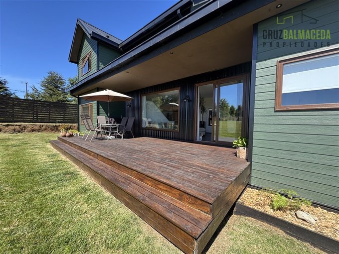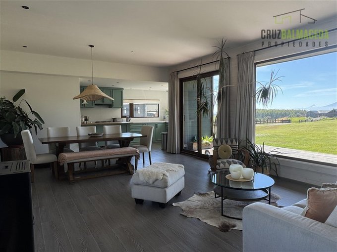 La casa se encuentra emplazada en una parcela de 5.000m2 limpia, con pequeños lomajes, y con una espectacular vista al volcan Osorno, Puntiagudo, Tronador y Casa Blanca, ademas de vista al lago Llanquihue