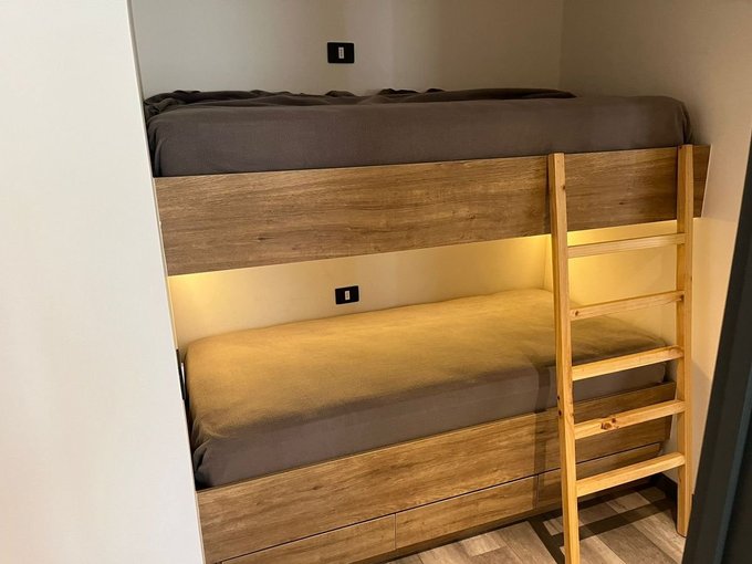 Camarote empotrado con dos camas en pasillo