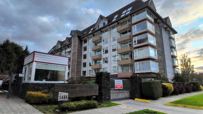 Departamento full amoblado estilo mariposa ubicado en tercer piso en condominio Los Colonos, sector Puerto Chico a pasos del lago Llanquihue, calle Caupolicán número 1484, comuna de Puerto Varas.