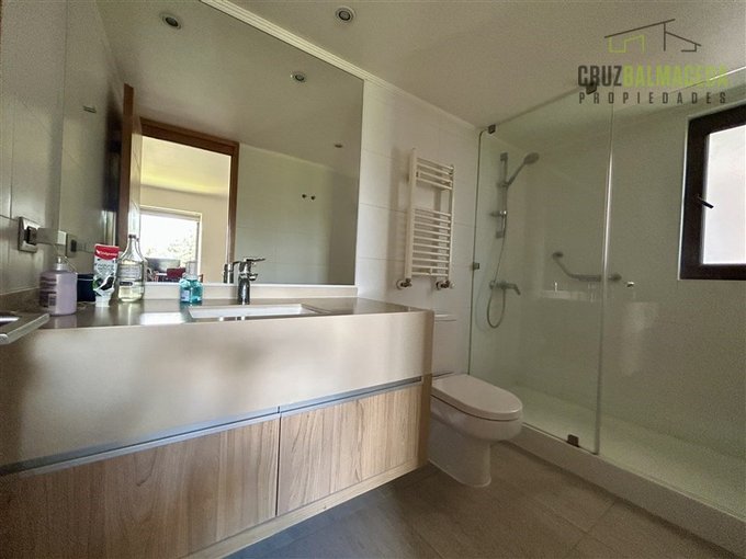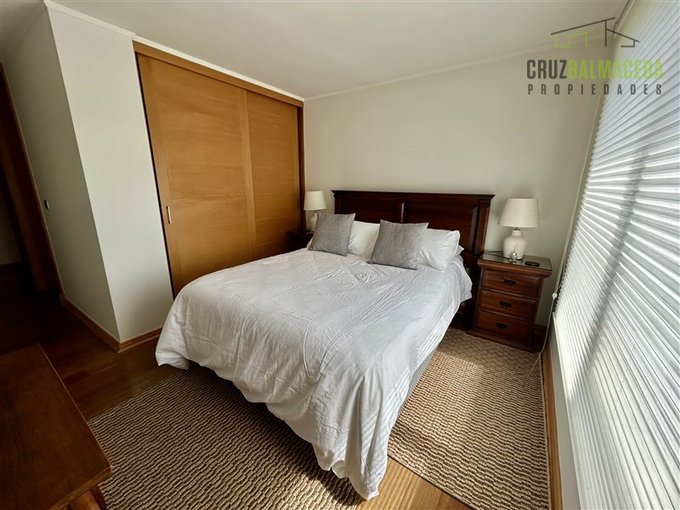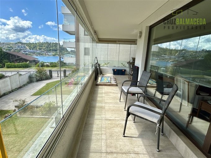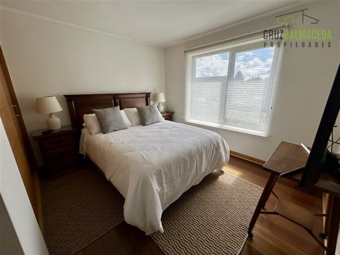El departamento está en un segundo piso, tiene vista lateral al lago y a la ciudad de Puerto Varas.