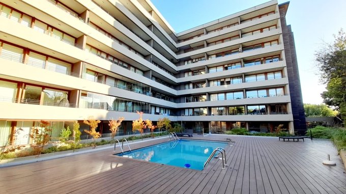 Edificio de elegante arquitectura y terminaciones cuenta con seguridad 24/7, piscina climatizada, gimnasio, salas multiuso, estacionamiento de bicicletas, amplios jardines y gran terraza con vista panorámica al lago.