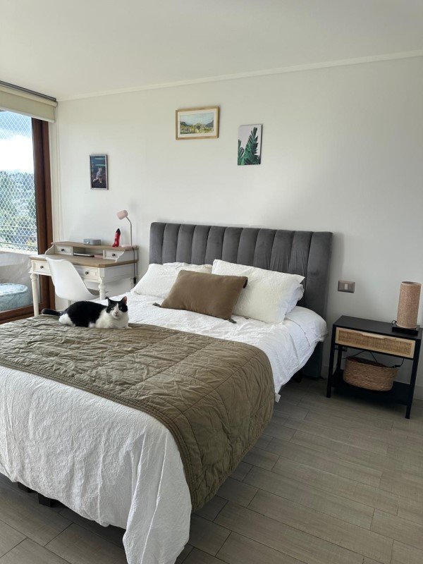 Practicamente Nuevo, 1 año, impecable, en 7 piso, esquina, sin vecinos al lado. Cuenta con excelente luminosidad natural, dos amplias terrazas, 2 baños, baño principal con ventana. Dormitorio principal en suite con Walk-in closet y amplio baño. Segundo dormitorio amplio con mucha luz. Amplios closets, cocina americana, cubierta granito, muchos muebles. Gran living comedor con terraza, vistas despejadas, piso de porcelanato tipo madera en todo el departamento. El living y el dormitorio principal tienen grandes terrazas, con vistas despejadas y panorámicas de la ciudad.