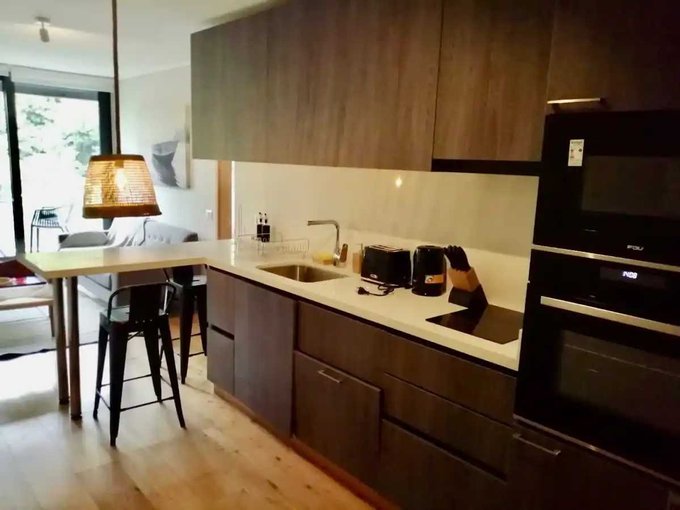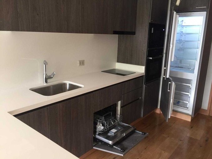 Cocina full equipada (encimera, horno, campana, lavavajilla, refrigerador)
