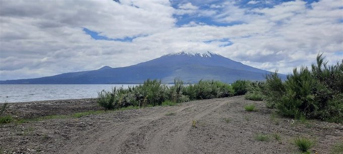 Playa Exquisita: Orilla de lago con arena fina y vista impresionante del Volcán Osorno.