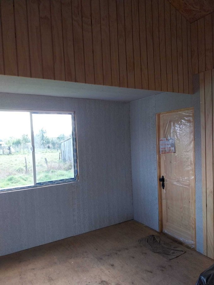 La propiedad cuenta con dos casas, ambas de madera y construidas sobre pilotes de cemento. Una de ellas es antigua y cuenta con 54 m2 aproximadamente, dos dormitorios y 1 baño. La otra de 92 m2, con alto avance de construcción, realizada en con buena aislación en muros y cielos, planchas de OSB y revestida externamente en siding fibrocemento e interior con mdf ranurado, piso madera terciada estructural. Esta tiene 3 dormitorios y dos baños, living comedor con cocina americana, ventanales de pvc con vidrios simples, sector terraza techada.