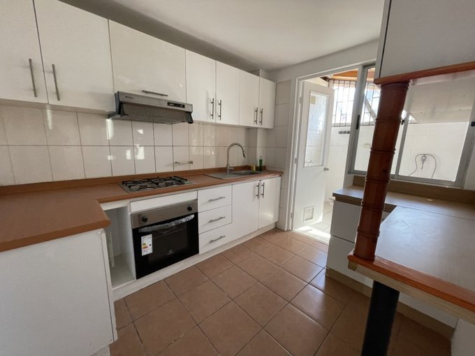 Amplia cocina amoblada y equipada con encimera.
