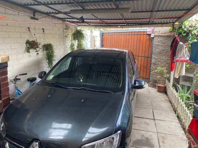 Acceso para un vehículo con cobertizo y portón eléctrico
