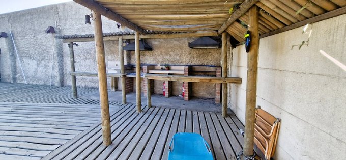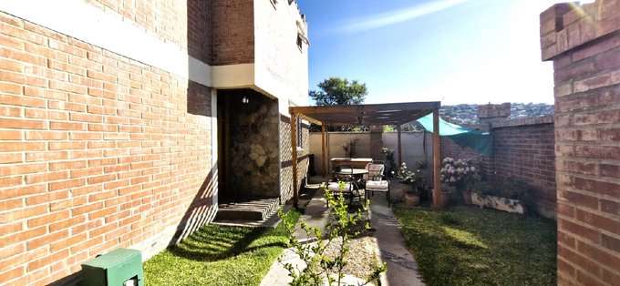 Se cuenta con dos patios laterales, en uno de ellos se puede instalar una lavadora y colgar ropa lavada, un patio frontal a la entrada de la casa, con una terraza techada y con estacionamiento para varios vehículos, uno dentro de la propiedad y varios fuera de ella.