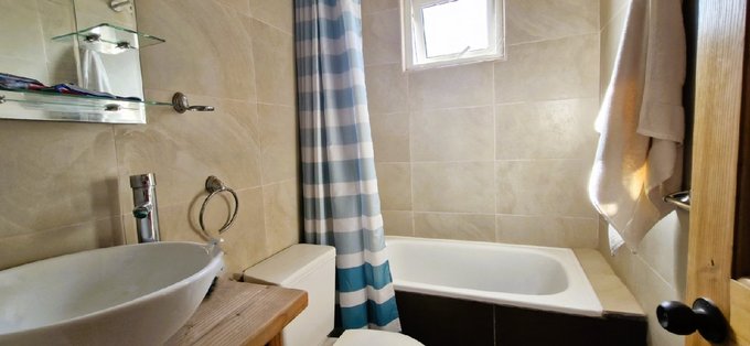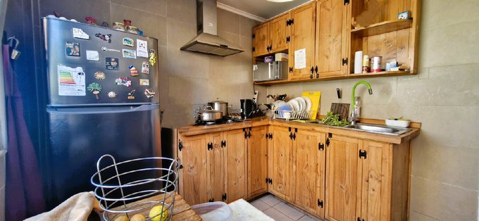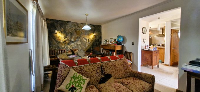 La casa de 110 m2, emplazada en un terreno de 140 m2., es de dos pisos, totalmente construida con albañilería afinada. La casa posee cuatro dormitorios con closets, y tres baños, un dormitorio con baño en el primer piso, y tres dormitorios con dos baños en el segundo, el dormitorio principal tiene un walking closet y un baño en suite, living comedor, cocina tradicional, amoblada con muebles de maderas nobles, con un eficiente horno eléctrico, campana extractora y encimera. Debajo de la escala cuenta con una bodega para víveres y útiles de aseo, la cual se abre desde la cocina.
