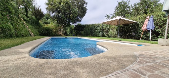El terreno está ubicado en una loma, por lo tanto es una parcela con declive, que cuenta con dos explanadas, una con un gran quincho de 50 m2., de albañilería afinada y otra con una piscina de 12 m. x 4 m. y otras terrazas en la ladera, en donde se ubica gran variedad de árboles frutales y ornamentales.