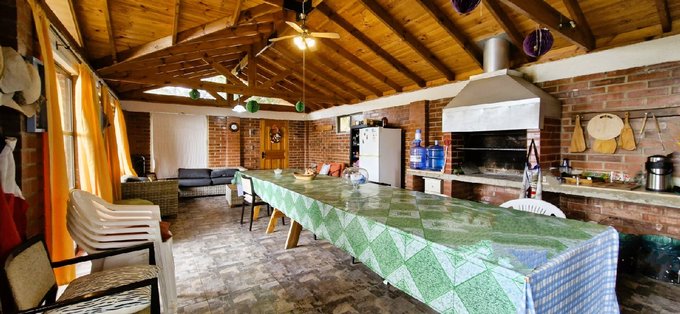 Este gran quincho es ideal para reuniones familiares o con amigos. Pero perfectamente con tabiquería, puede transformarse en una casa, incluso se podría ampliar. Adosado al quincho tenemos un baño completo.