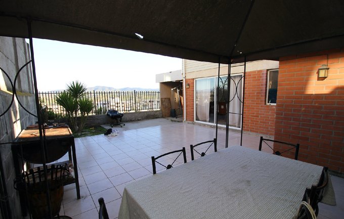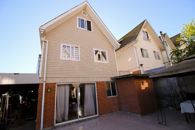 Patio trasero con quincho y bodega + antejardín con estacionamiento para 2 vehículos.