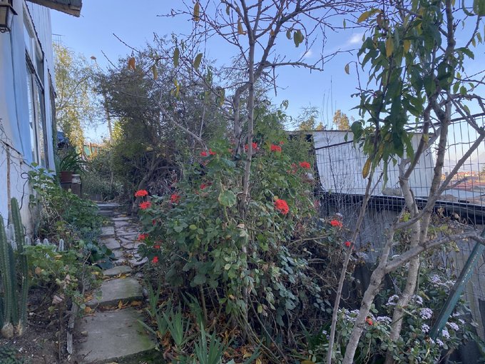Cuenta con un terreno muy amplio con más de 770 m2 que da a calle Las Violetas y a calle Los Lirios con accesos habilitados a ambas calles y locomoción a la puerta. Vista despejada al valle hacia el sur y el oriente. Amplio patio con variados árboles frutales, almendro, palto. Además, hacia calle Las Violetas tiene una construcción de 2 pisos con 4 dormitorios y dos baños, la que debe ser totalmente remodelada y refaccionada. Hacia calle Los Lirios hay otra construcción en obra gruesa de albañilería de ladrillo de un piso.