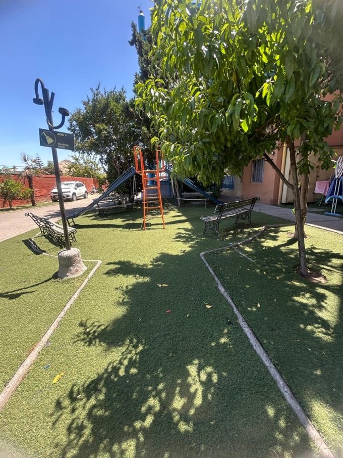 El condominio cuenta con 6 edificios y el departamento está en el número F, cuenta con árboles frutales, área de parques infantiles, salón de eventos, quinchos y estacionamiento de visitas.