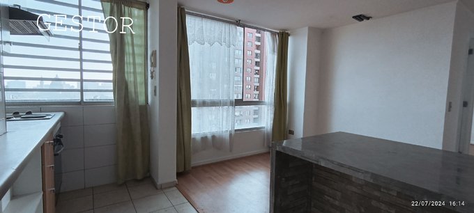 Departamento ubicación privilegiada, muy iluminado, en piso 12, Quinta Normal. Rosas con Matucana. Tiene living comedor, cocina americana amoblada, equipada. pequeño pasillo con closets y frente con un baño completo, lleva a una habitación que además tiene closets de buen tamaño. El departamento tiene estacionamiento y bodega (juntos). Edificio tiene gran equipamiento en general, jardín interior, tres ascensores, conserjería 24 horas, estacionamiento visitas. Además, sector tiene bencineras, todo tipo restaurantes, supermercados, parques a minutos, y metro a dos cuadras. movilización a todo Santiago. Gasto común $65.000.- aproximados, según promedio últimos 12 meses.