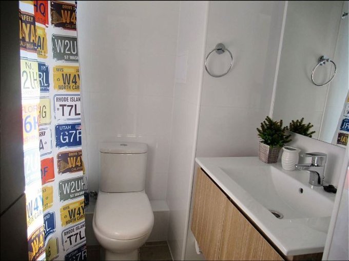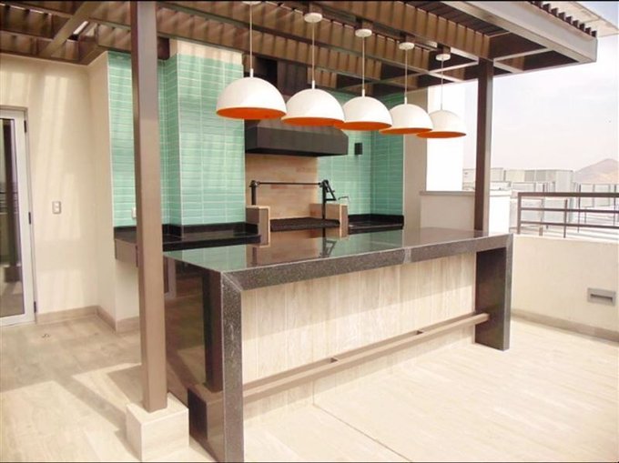 Cocina amoblada con cubierta de granito, encimera de dos platos, horno y campana eléctrica. (Edificio full eléctrico) Baño con tina y ventilación propia.