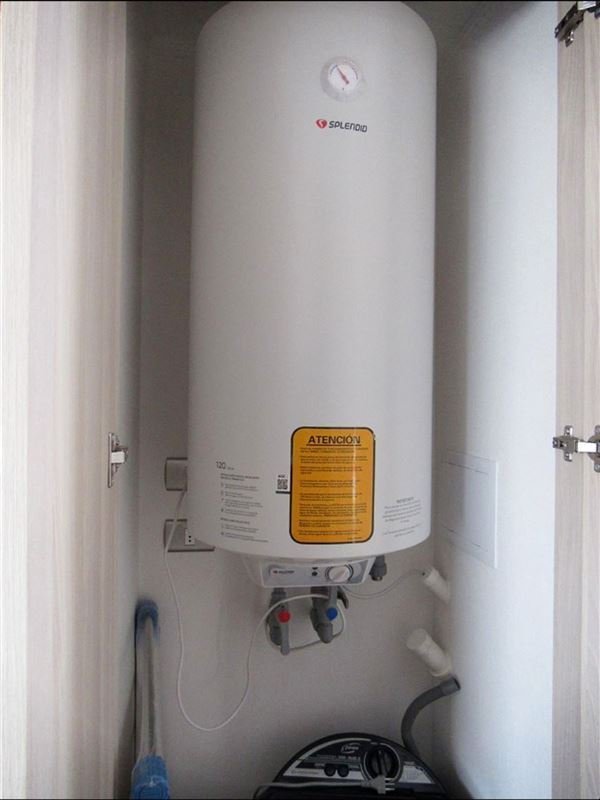 Consumo agua caliente individual por departamento, ventanales termopanel, pisos en porcelanato, conexión para lavadora. Cortinas roller, lámparas de techo, refrigerador, lavadora y dos sillas.