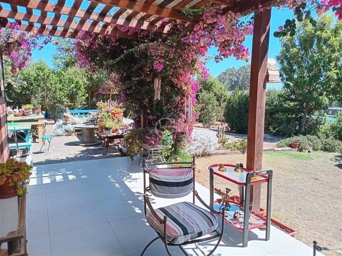 - Amplia terraza rodeada de plantas y flores
