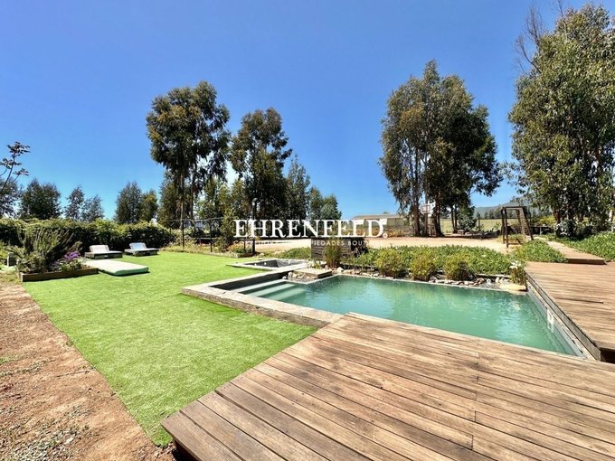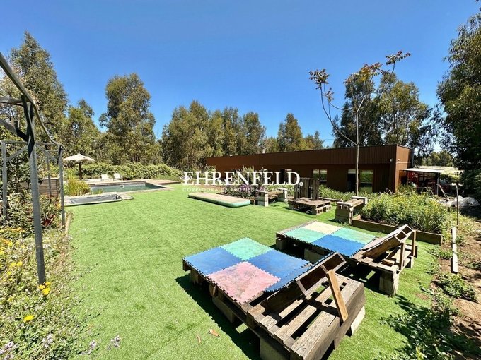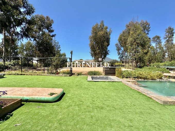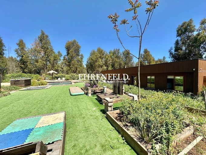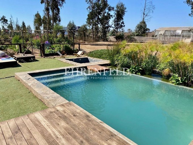 La casa tiene piscina ecológica, con jacuzzi exterior, huerta de 81 m2, Invernadero de 40 m2, mini cancha de fútbol, quincho de cemento, sector de fogón, riego automático para cerco vivo, pasto, huertos, jardines, árboles frutales y cancha de fútbol. Área de compostaje y Piletas con plantas acuáticas. Además cuenta con un biofiltro para tratamiento de aguas grises, Humedal Artificial Depurador, y se reutilizan las aguas en regadío (recuperando 30.000 litros mensuales). Los empalmes de agua y de luz son individuales por parcela, el condominio cuenta con agua de pozo y de camiones aljibes esval.