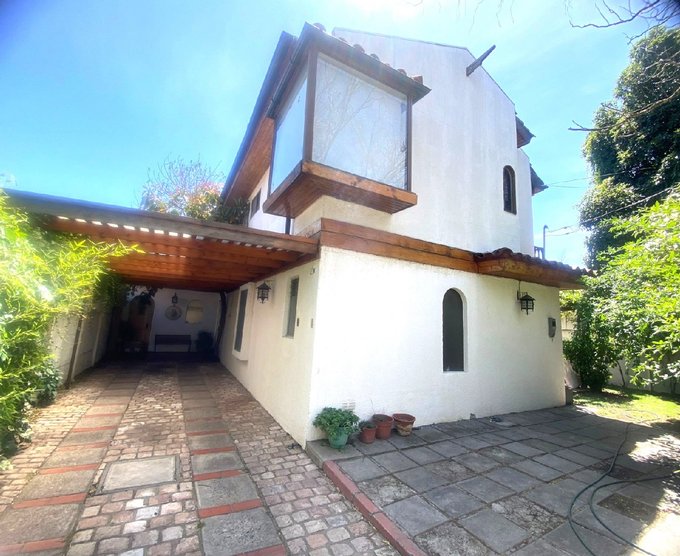 Patio amplio cuenta con estacionamiento para dos vehículos grandes, bodega, piscina y quincho.