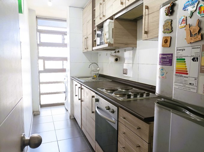 Departamento de 2 dormitorios, 2 baños, con estacionamiento y bodega, ubicado en Av. Recoleta casi en la esquina con calle Santos Dumont.