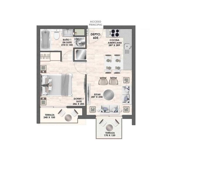 Departamento de un dormitorio en suite