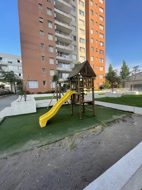 Edificio con accesos controlados, estacionamientos de visitas, piscina, áreas verdes, bicicletero, 6 quinchos, cancha de futbol y conserjería 24/7.