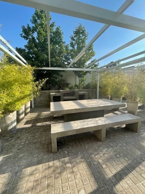 Edificio con accesos controlados, estacionamientos de visitas, piscina, áreas verdes, bicicletero, 6 quinchos, cancha de futbol y conserjería 24/7.