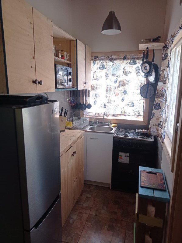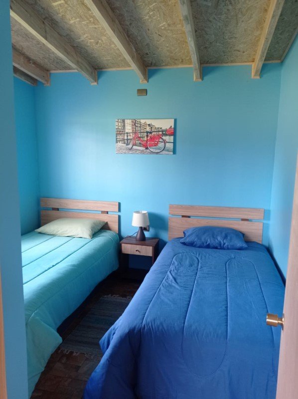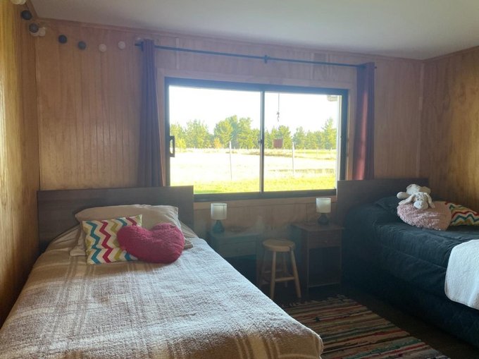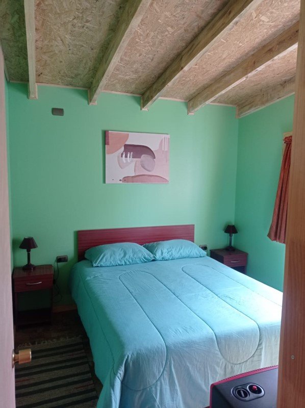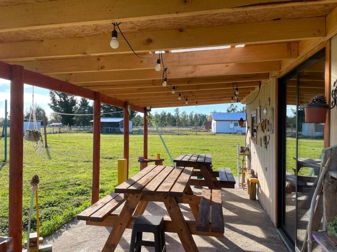 Cabaña 2: de 20,25 m2, con radier, terraza techada de 4,5 m2, 1 ambiente (dormitorio, comedor, cocina), 1 baño, calefón, capacidad para 4 personas y gran estacionamiento.