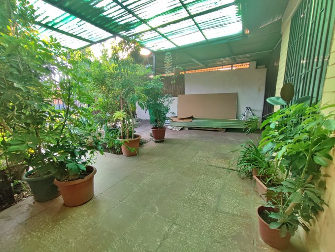 * Amplio antejardín con abundantes árboles y plantas