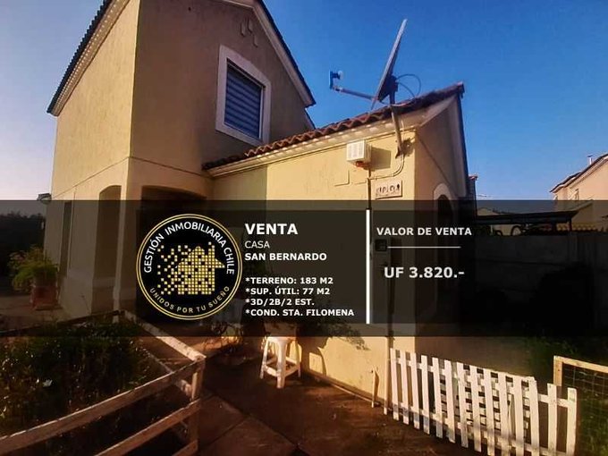 IMPERDIBLE CASA EN ESQUINA DENTRO DE CONDOMINIO SANTA FILOMENA, SAN BERNARDO!