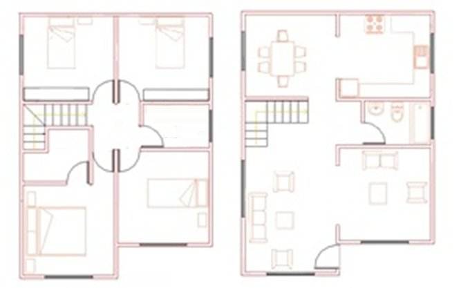 Linda casa en 2 pisos 104 m2., muy luminosa con 4 dormitorios, baño, living comedor, cocina, sala estar Antejardin, patio para estacionar hasta 3 vehiculos, proteccion en las ventanas.