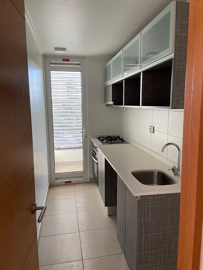• Cocina amoblada, cubierta de cuarzo, campana, encimera y horno.