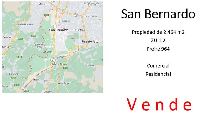 Atención Inmobiliarias, oportunidad única de inversión en el corazón de San Bernardo. CIP favorable para construcción proyecto mixto en altura.