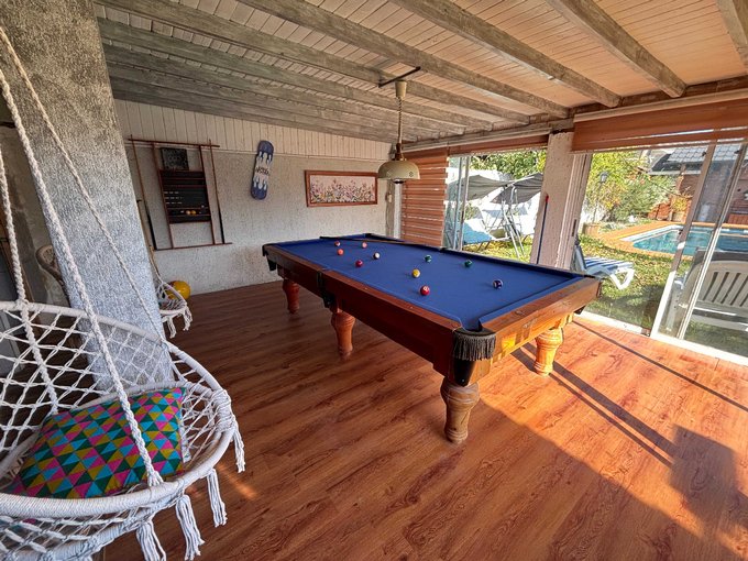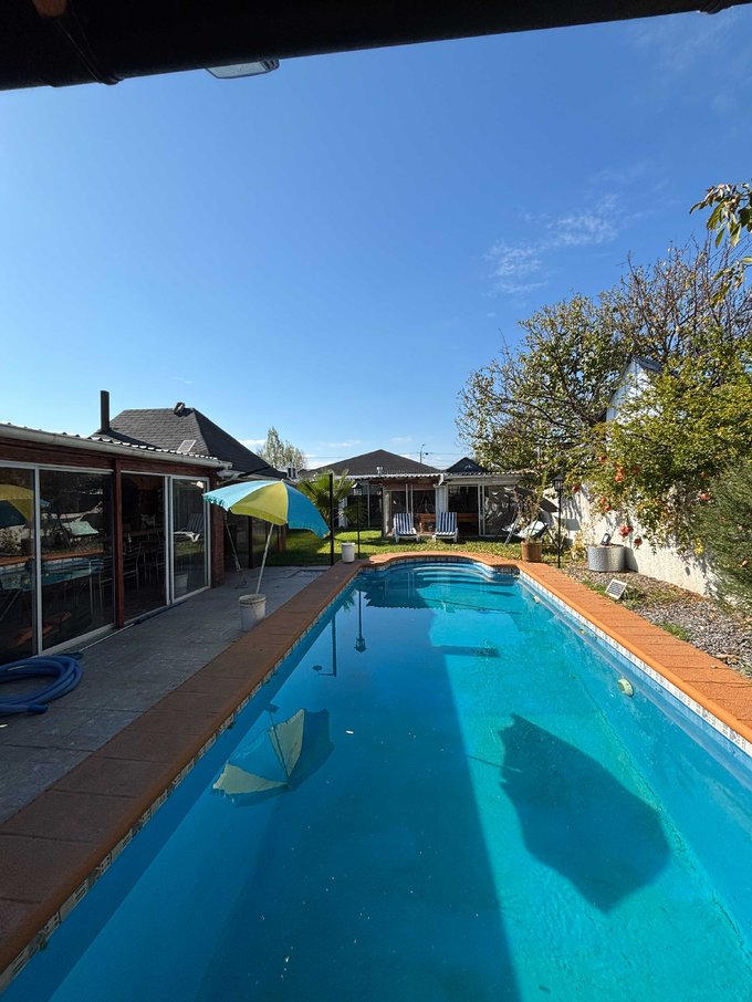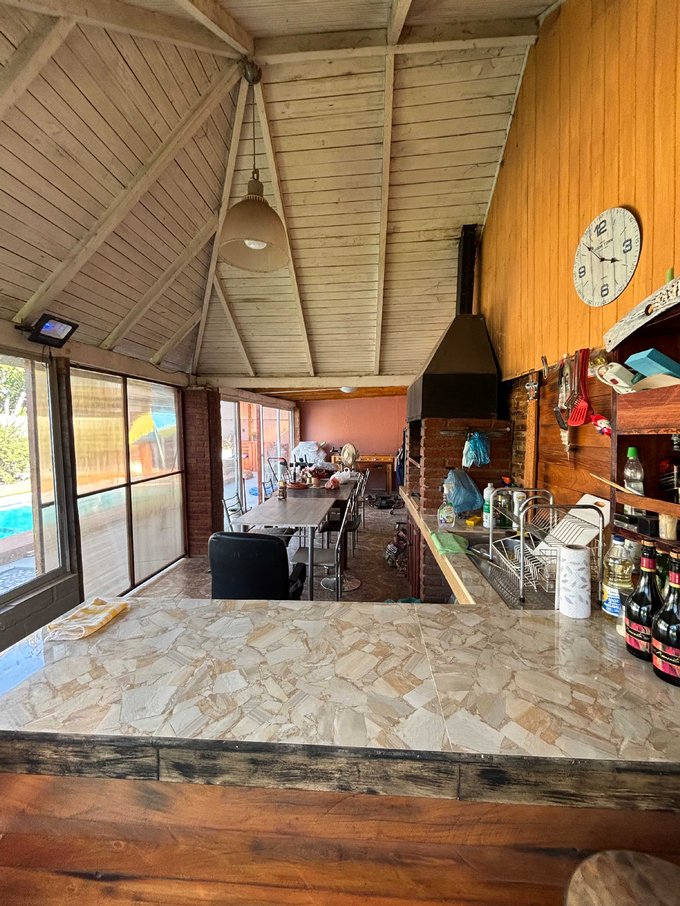 Destaca su área exterior, con una amplia piscina de 9 x 3 metros, complementada con baño independiente, ideal para disfrutar en temporada de verano con total comodidad. Además, dispone de quincho cerrado, sala de juegos y distintos espacios acogedores que invitan a compartir.