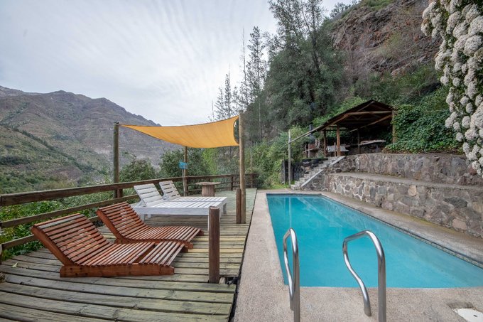 Admira la hermosa vista panorámica al Rio Maipo desde la terraza o el balcón y disfruta del ambiente acogedor del quincho para tus reuniones al aire libre. Relájate en la piscina rodeada de un jardín exuberante mientras disfrutas de la tranquilidad que ofrece esta ubicación única. Además, con múltiples espacios de estacionamiento, mas bodega y leñera.