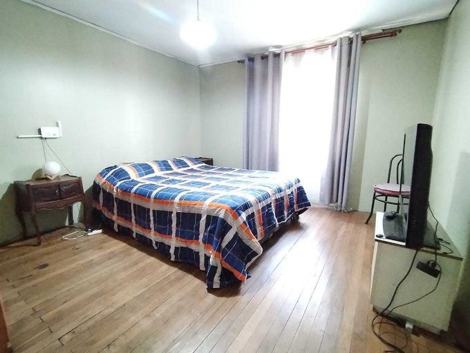 3 Dormitorios, 1 baño, living comedor amplios con piso de parquet, más una sala para eventos familiares con chimenea y patio amplio con jardín y quincho, casa esquina totalmente sólida, metrajes reales y regularizados.
