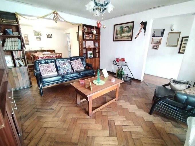 3 Dormitorios, 1 baño, living comedor amplios con piso de parquet, más una sala para eventos familiares con chimenea y patio amplio con jardín y quincho, casa esquina totalmente sólida, metrajes reales y regularizados.