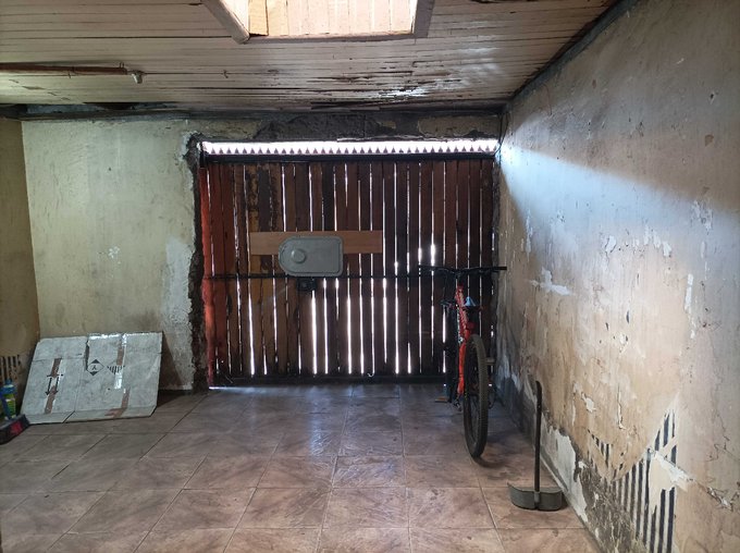 Cuenta con estacionamiento techado para un automovil pequeño con portón.