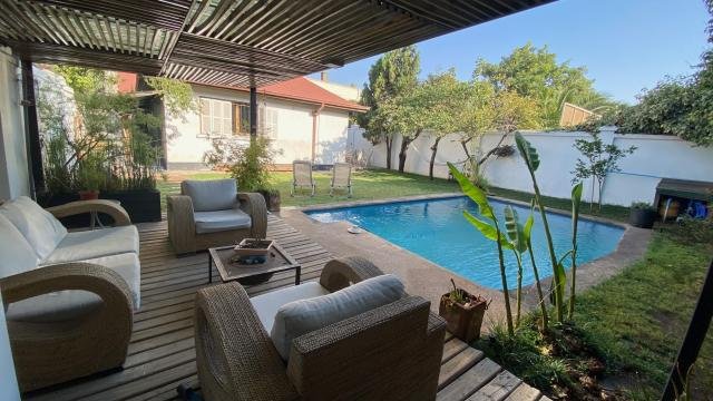 :.PROCASA .: VENDE HERMOSA CASA SAN MIGUEL. Hermosa casa ubicada a una cuadra del metro lo Vial, 530 m2 Terreno 175 m2 construídos . 1 piso. 4 dormitorios con amplios closets, gran Dormitorio principal, 3 dormitorios secundarios de buen tamaño 2 baños, Living, Comedor, Comedor de diario, Cocina independiente, Lavadero y tendedero bajo techo, 1 baño principal con tina grande, 1 baño de visita con tina, 1 sala de estar, 2 terrazas. . Todo el piso interior de la casa es en madera nativa vitrificada. Perfecto estado de mantención, cómoda, calidad en construcción y grandes espacios interior y exterior. Antejardín más estacionamiento con capacidad para 3 autos, toda la casa cuenta con protecciones en fierro macizo incluyendo reja y portón. Gran jardín posterior con árboles frutales y ornamentales, regadío automático y piscina, además de quincho con parrilla y horno de barro, ideal para desconectarse. Cercana a colegios, centros de salud, grandes cadenas de supermercados , Sodimac, farmacias, muy buena conectividad a las autopistas. Servicios a destacar: Piscina, Portón Automático, TV Cable, Riego automático. Cocina: Comedor Diario, Cocina Equipada, Cocina Amoblada. Otros: Persianas, Protecciones, Ventana Termo-paneles. Dividendo estimado: 80,9 UF/mes . Todos los espacios pensados para un excelente bienestar. Agende cuanto antes su visita!. Procasa: 63686