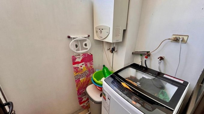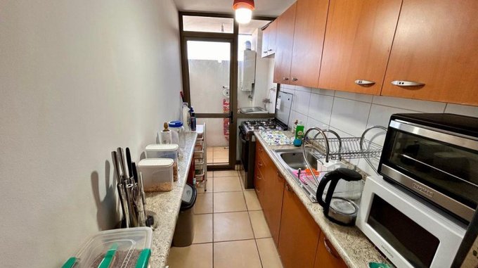 Cocina independiente con loggia donde se ubica la conexión a lavadora y Calefont.