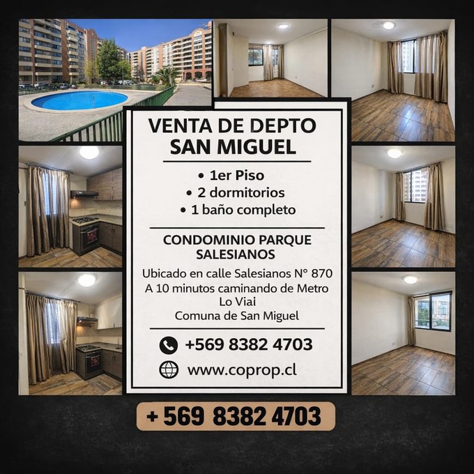 Se vende acogedor departamento en primer piso, 40 m2, ubicado en Avenida Salesianos 870 con San Francisco, en un sector estratégico de la comuna de San Miguel. Activo ideal tanto para vivir como para inversión, con alta conectividad y entorno consolidado.