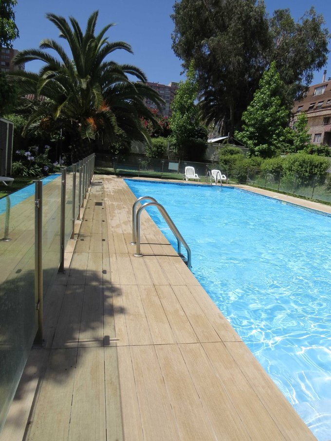 El departamento consta de dos dormitorios y dos baños, dormitorio principal en suite con closet, ventanas termopanel, el baño posee tina y luz natural; el dormitorio secundario tiene closet y es ideal para una cama de plaza con escritorio o para una cama de 2 plazas. La cocina es semi integrada con mesón granito y equipada con muebles, encimera vitrocerámica, horno y campana eléctricos y espacio para refrigerador. La logia es independiente con conexión a lavadora; El living comedor es luminoso acceso a terraza con vista norte. 1 estacionamiento techado y 1 bodega.