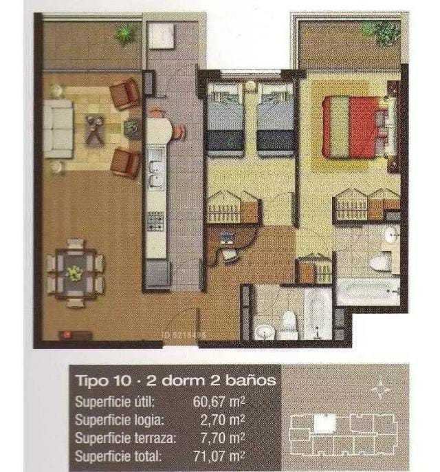 Departamento de 60 m2 útiles, más 11 m2 de terrazas aproximados.